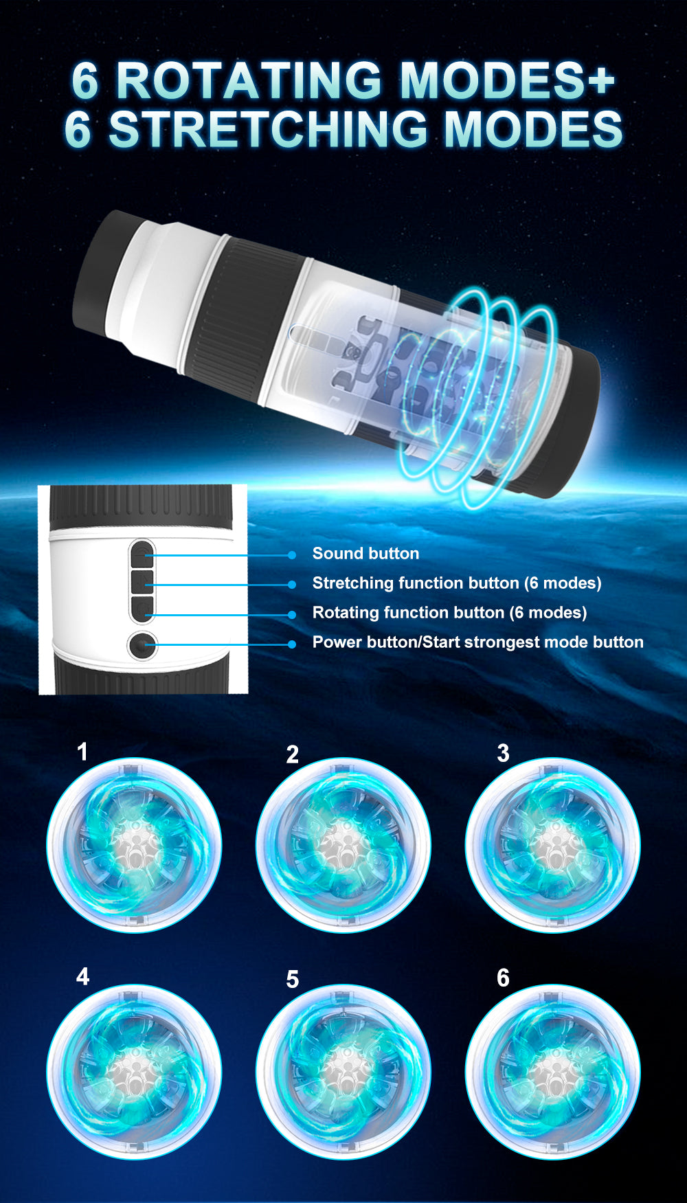 The 98K Lens Masturbator Cup With a unique camera lens styling sleeve, specially designed inner texture, and 6 stretching modes, 3 rotation modes and 3 frequency voice.